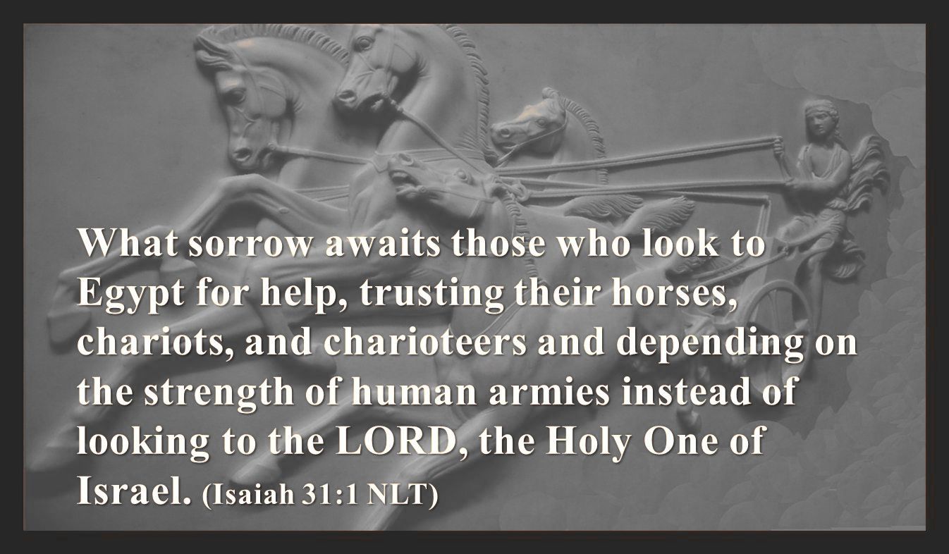 31 “Woe to them that go down to Egypt for help; and stay on horses, and trust in chariots, because they are many; and in horsemen, because they are very strong; but they look not unto the Holy One of Israel, neither seek the Lord!”