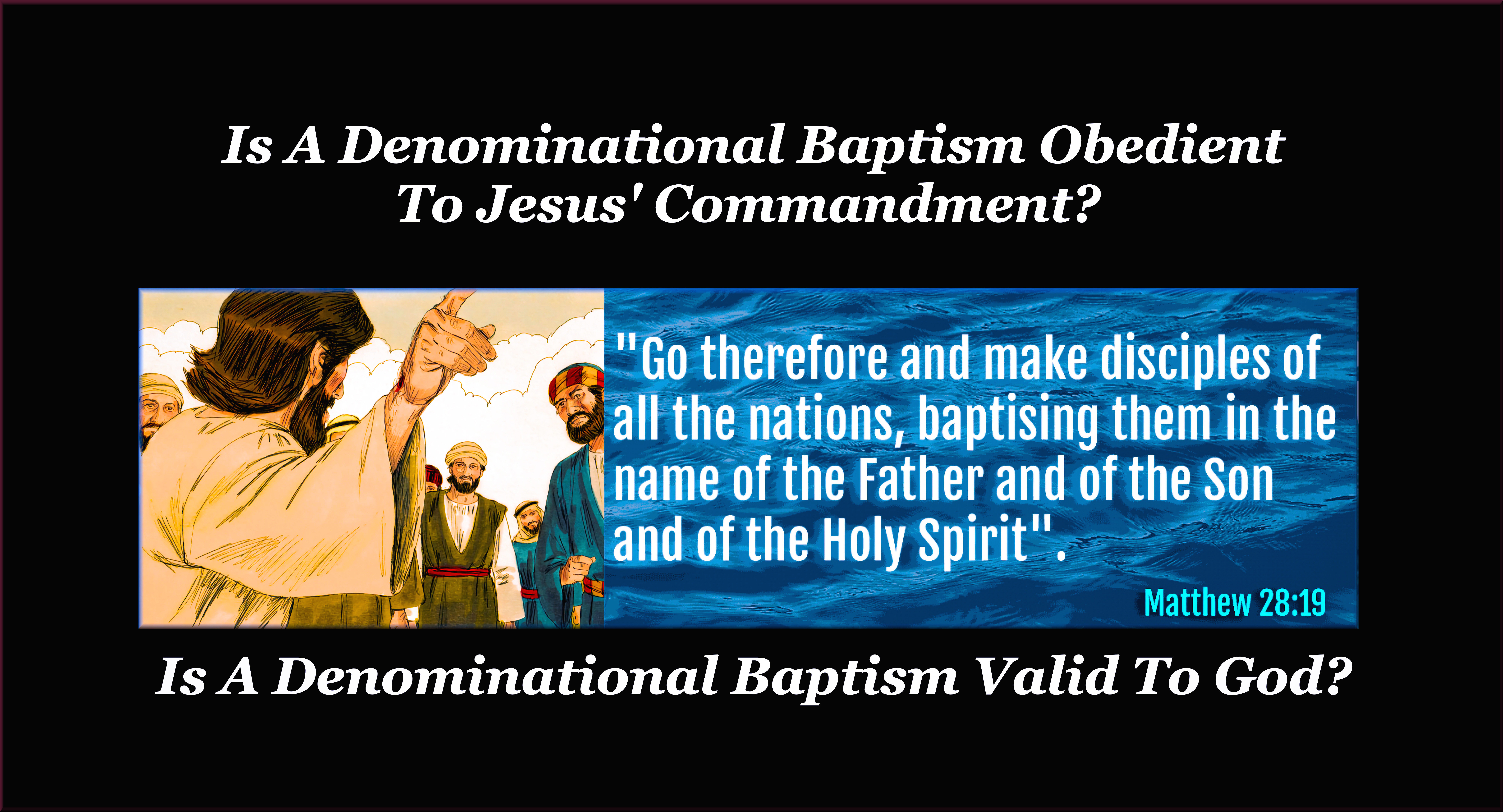 If we practice denominationalism, then we are disobeying the commandments of God. So, this simply means the person baptized with a denominational baptism, who believes they are keeping a commandment by attending, identifying, practicing, and worshiping according to the creeds of a denomination, has just received an invalid baptism for the Holy Spirit of God does not lead an individual into a denomination.