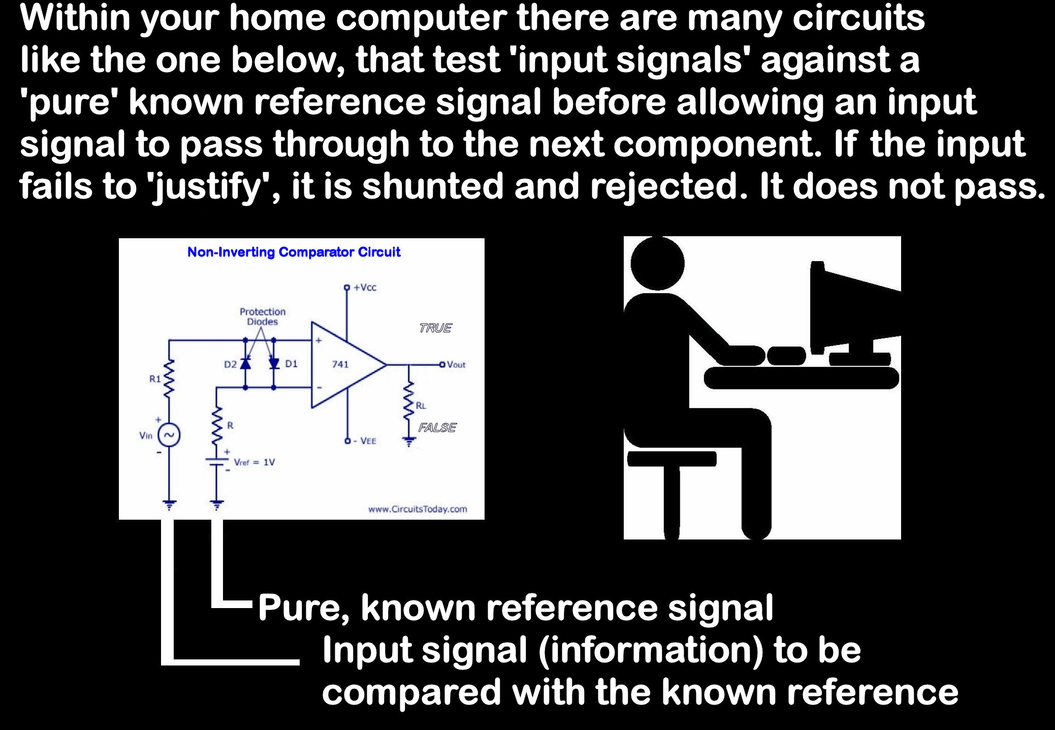 You will remember that in the digital circuitry a pure reference was needed to determine whether or not the input signal was valid. It is also necessary in the mental decision-making process.